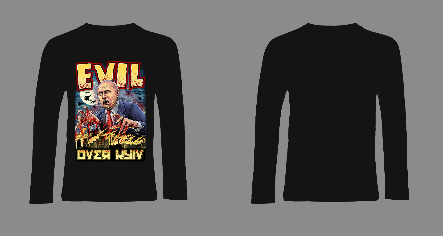 A proto nebylo jiné možnosti, než pro motiv na charitativní tričko pro Ukrajinu zvolit tuto Tvář Zla, aby každý viděl proti čemu se lidé na Ukrajině brání a bojují a proti čemu stojí celý svobodný svět. Nikdo nesmí mít strach se podívat do očí šílence, který nenávidí lidi a život. Tuto zrůdu je potřeba zastavit co nejdříve, než zemřou další nevinné oběti této vylhané války.